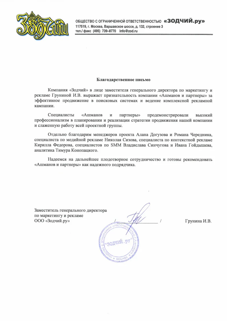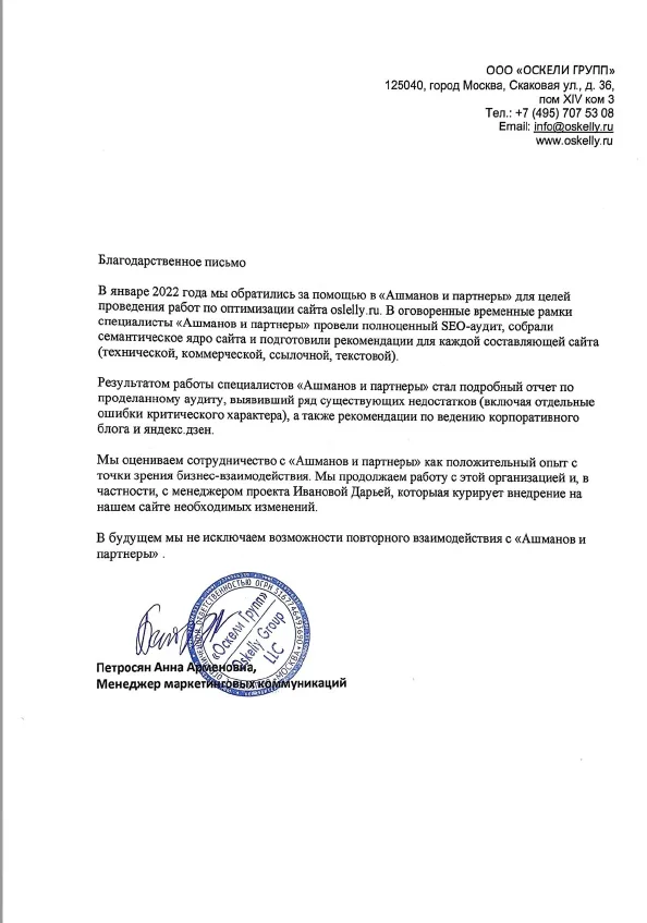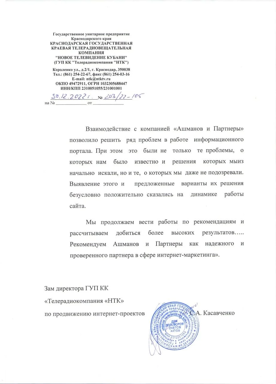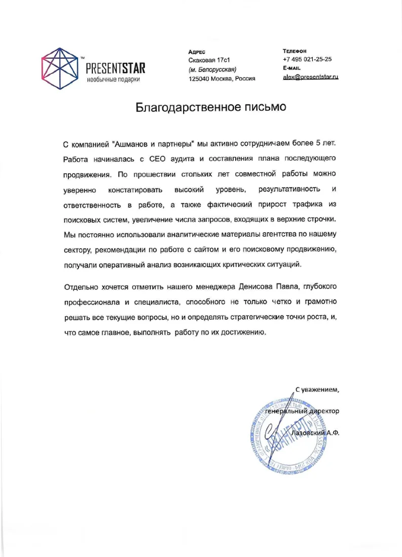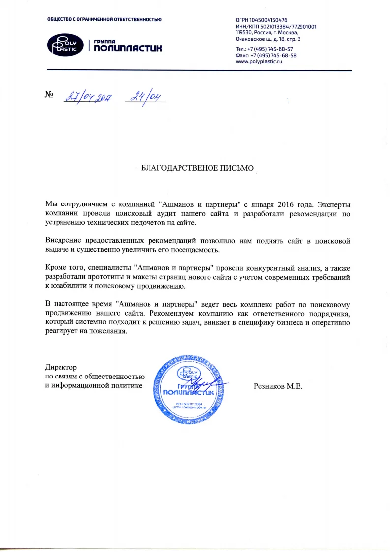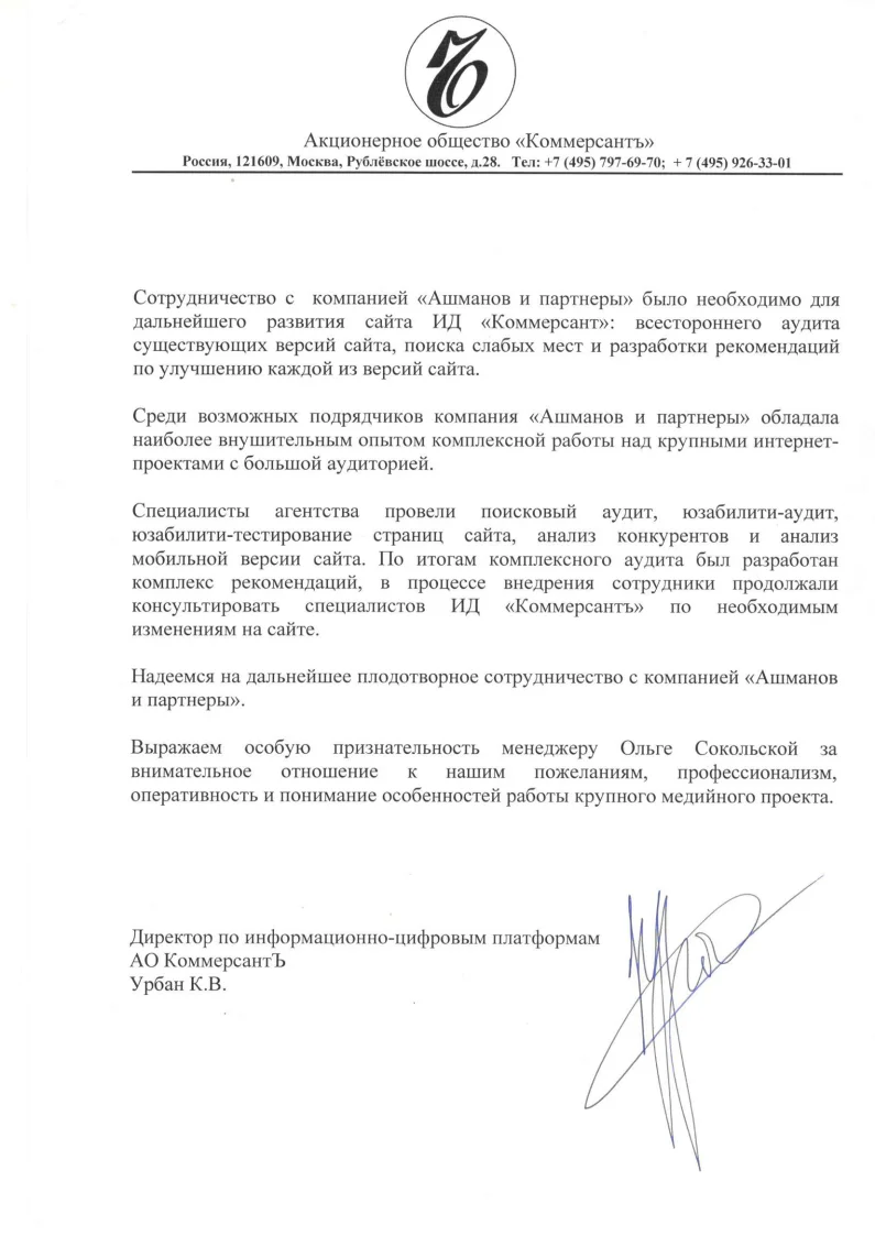 Мы планируем продолжить совместную работу с «Ашманов и партнеры» и рекомендуем это агентство как профессионального, исполнительного подрядчика, который внимательно относится к пожеланиям клиентов.