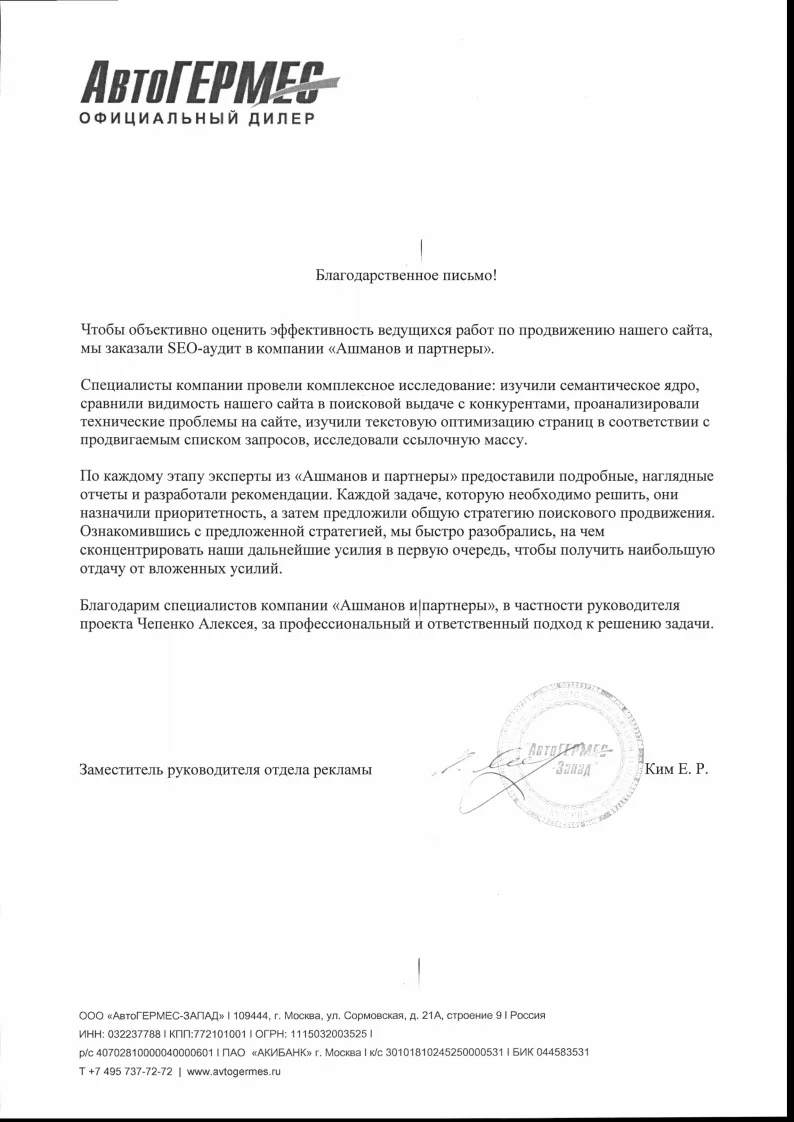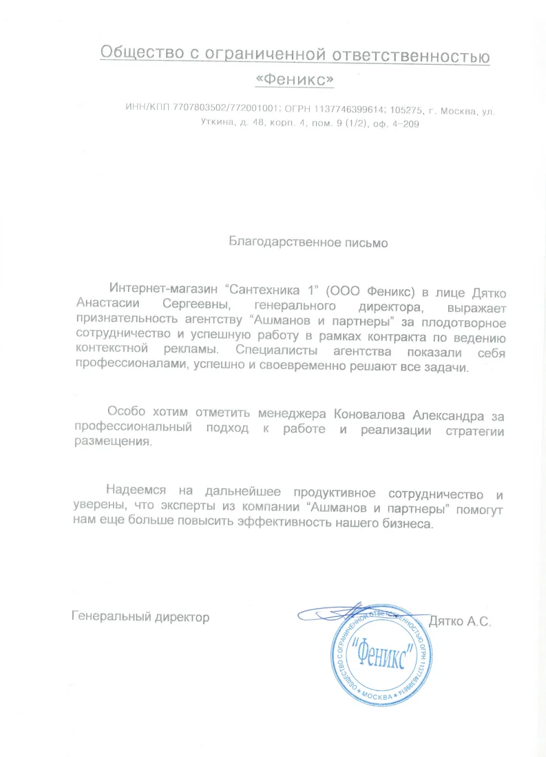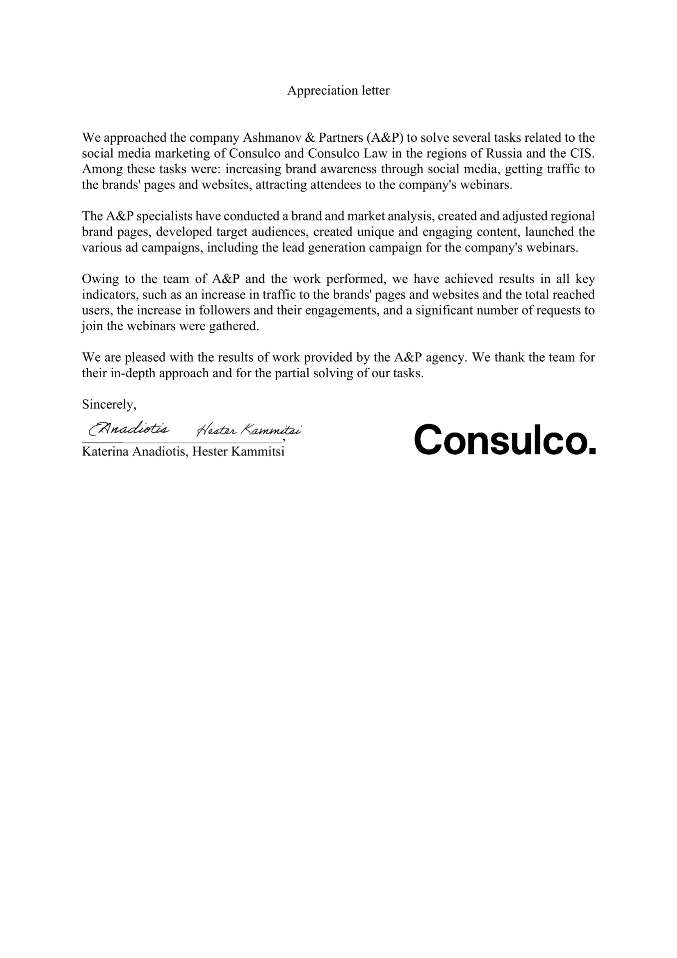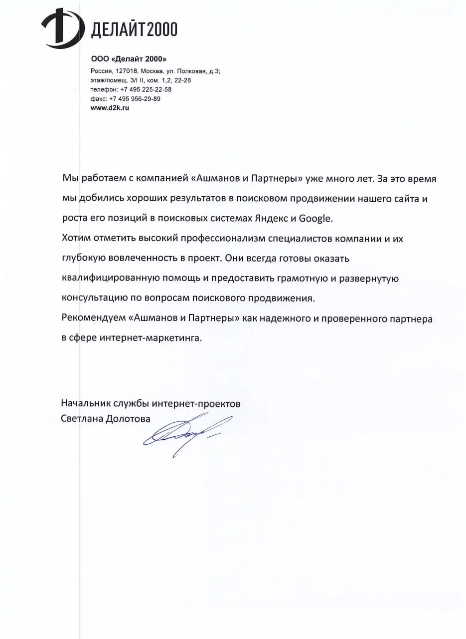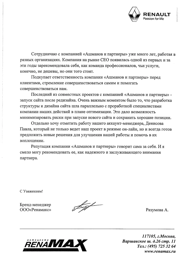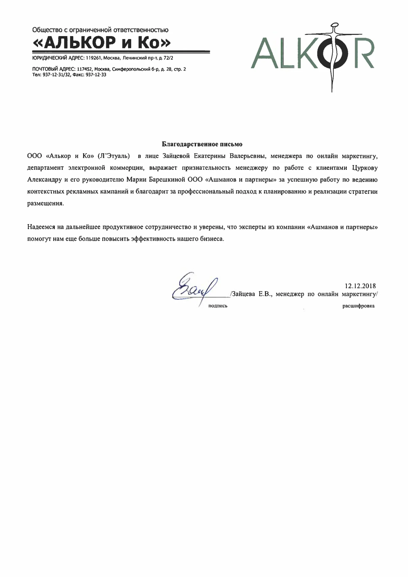 Мы планируем продолжить совместную работу с «Ашманов и партнеры» и рекомендуем это агентство как профессионального, исполнительного подрядчика, который внимательно относится к пожеланиям клиентов.