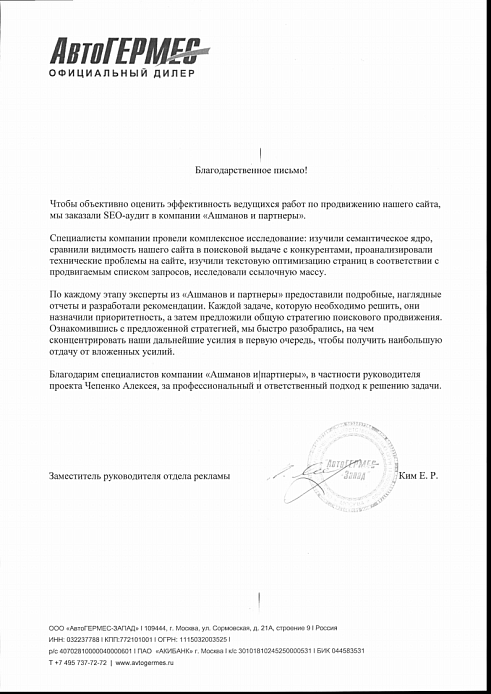 Заместитель руководителя отдела рекламы АвтоГЕРМЕС-Запад
