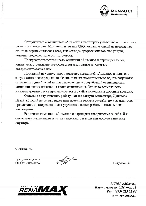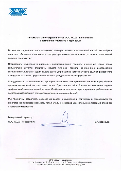 Мы планируем продолжить совместную работу с «Ашманов и партнеры» и рекомендуем это агентство как профессионального, исполнительного подрядчика, который внимательно относится к пожеланиям клиентов.