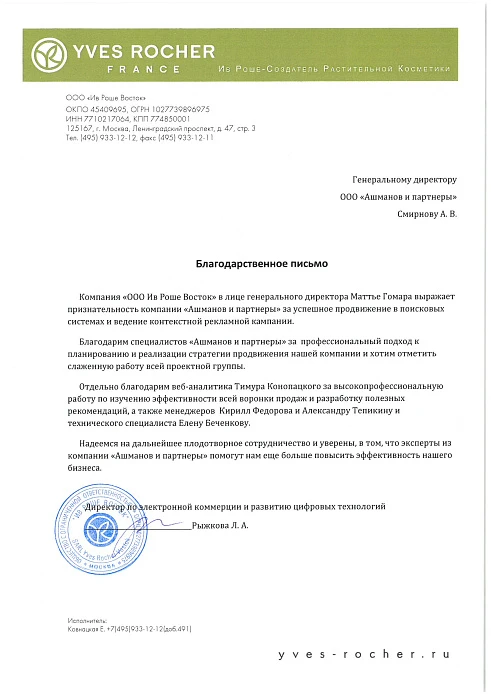 Директор по электронной коммерции и развитию цифровых технологий Yves Rocher