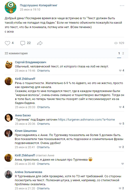 Добрый день! Последнее время все чаще встречаю в тз «Текст должен быть такой,чтобы не попадал под баден.» Если не тяжело объясните пожалуйста какой это текст, что бы я понимала, потяну или нет. ВСем... Читать далее