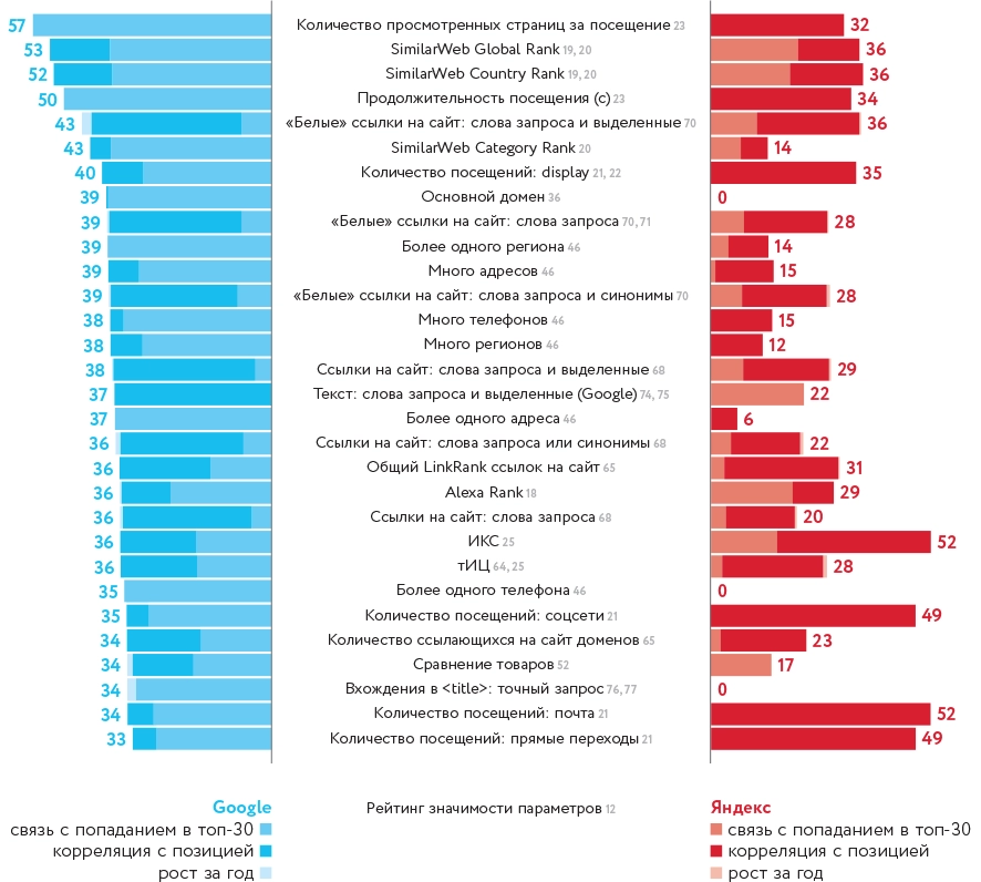 Чем отличаются сайты лидеров Google и Яндекса от тех, кто не входит в топ? Что именно делают их оптимизаторы: размещают ссылки, ставят SEO-тексты, а может, не делают ни того, ни другого? Мы постоянно анализируем эту информацию и выявляем корреляцию между позициями сайтов, которые находятся в топе и параметрами, связанными с ранжированием.