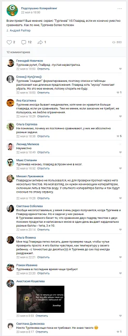 Всем привет! Ваше мнение: сервис «Тургенев» VS Главред, если их конечно уместно сравнивать. Как по мне, Тургенев более полезен